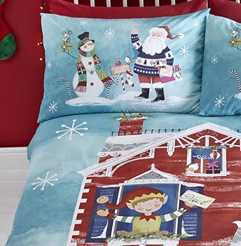 Waiting For Santa, Set Copripiumino Natalizio, Colore: Blu, Blue, Doppio
