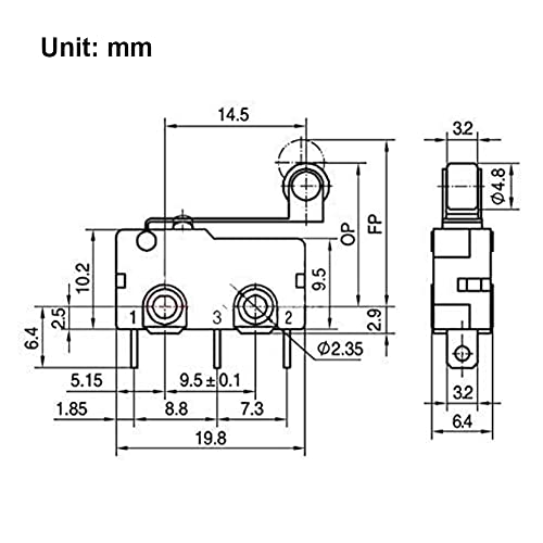 WAIZHIUA 10 Pezzi Micro Finecorsa Mini Interruttore a Leva, Microinterruttore con Rullo, SPDT AC 250V 5A 1NO 1NC Momentaneo a Cerniera Lunga Roller Mini Micro Limit Switch