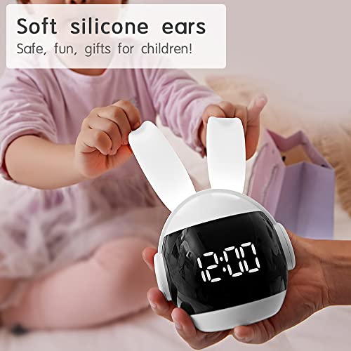 Wake-up Light per bambini, sveglia coniglio, 90 giorni in standby, facile da configurare, 6 suonerie, posticipo, ricaricabile, sveglia per addestramento del sonno per bambini (bianco)