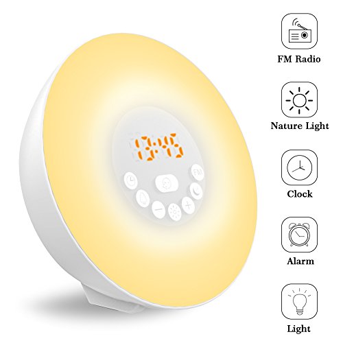 Wake-up Light, yoozon Sveglia Luce con Effetto Alba e 6 Suoni Naturali, Controllo Touche e Caricatore USB,Luce Notturna con 7 Colori / 10 Luminosità, Radio FM
