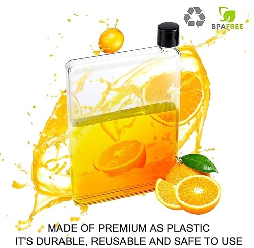 【Bottiglia Riutilizzabile】: Questa bottiglia d'acqua chiara a succo piatto è realizzata in plastica AS di alta qualità, non tossica, inodore e resistente all'usura, riutilizzabile e sicura da usare. Resistenza alla temperatura -20~120 gradi.