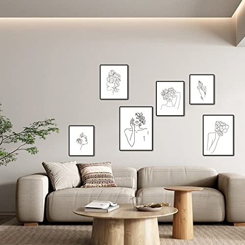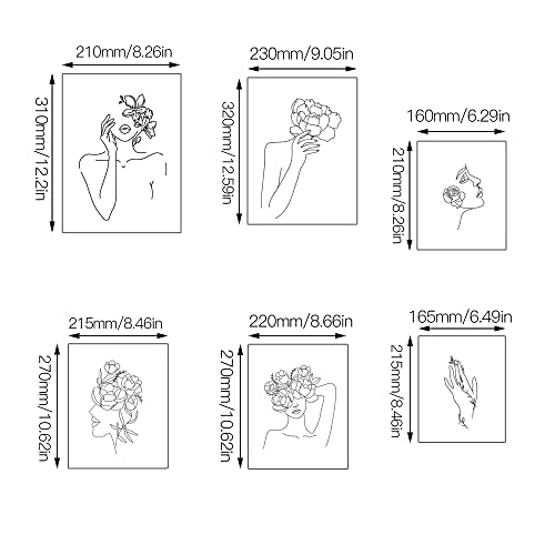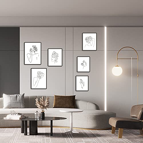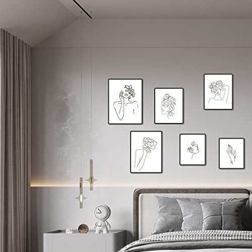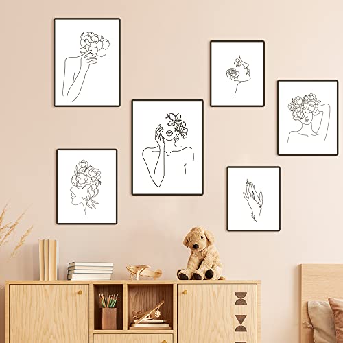 WakiHong 6 Pezzi Fiore Testa Linea Disegno Poster Linea Singola Minimalista Poster Della Donna Linea Disegno Parete Arte per Camera Nordico da Letto Decorazione,Senza Cornici