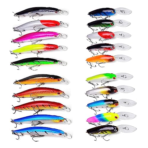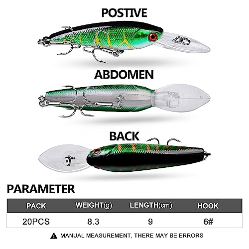 Walant Shallow Deep Diving Swimbait Wobbler - Set di 20 esche artificiali per luccio, lucioperca e persico, 9 cm/10 cm, per acqua dolce e salata