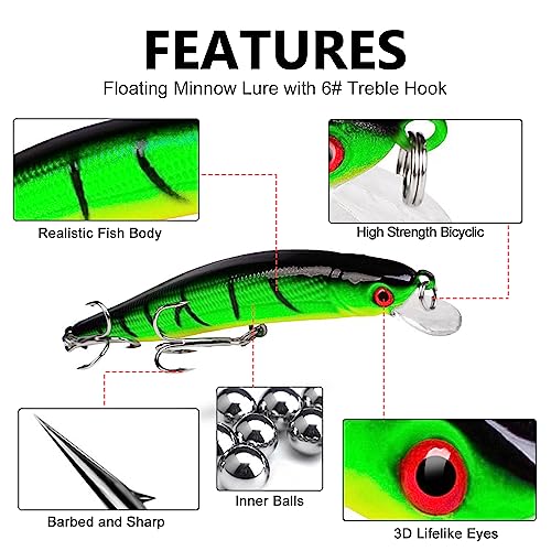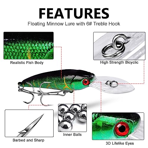 Ideale per la pesca: le esche hanno colori vivaci e riflettono bene per attirare i pesci. I robusti ganci impediscono alla esca di fuoriuscire. Può catturare bassi, trote, lucci, salmoni, lucioperca, pesce persico e molto altro ancora.