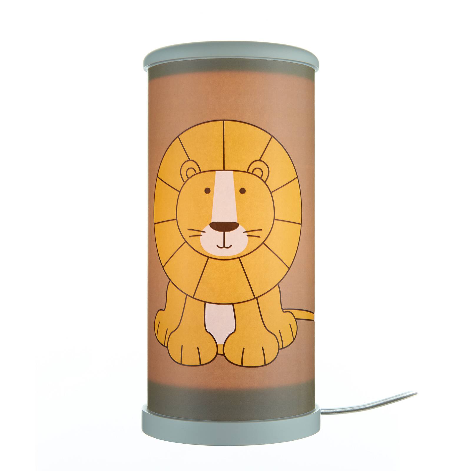 Lampada da tavolo leone in giallo per la camera dei bambini La lampada da tavolo per bambini Lion, di forma cilindrica, è composta da una base in legno laccato bianco e da un paralume stampato con un bel motivo di leoni. Viene fornito con una lampada a candela a LED ed è dotato di un interruttore nel cavo (circa 40 cm dalla lampada). Con attenzione ai dettagli, la lampada da tavolo lion è stata realizzata in Germania. Il produttore Waldi produce a mano da più di 40 anni lampade per camere di bambini e neonati utilizzando materiali adatti ai bambini. Le plastiche utilizzate sono prive di cadmio.