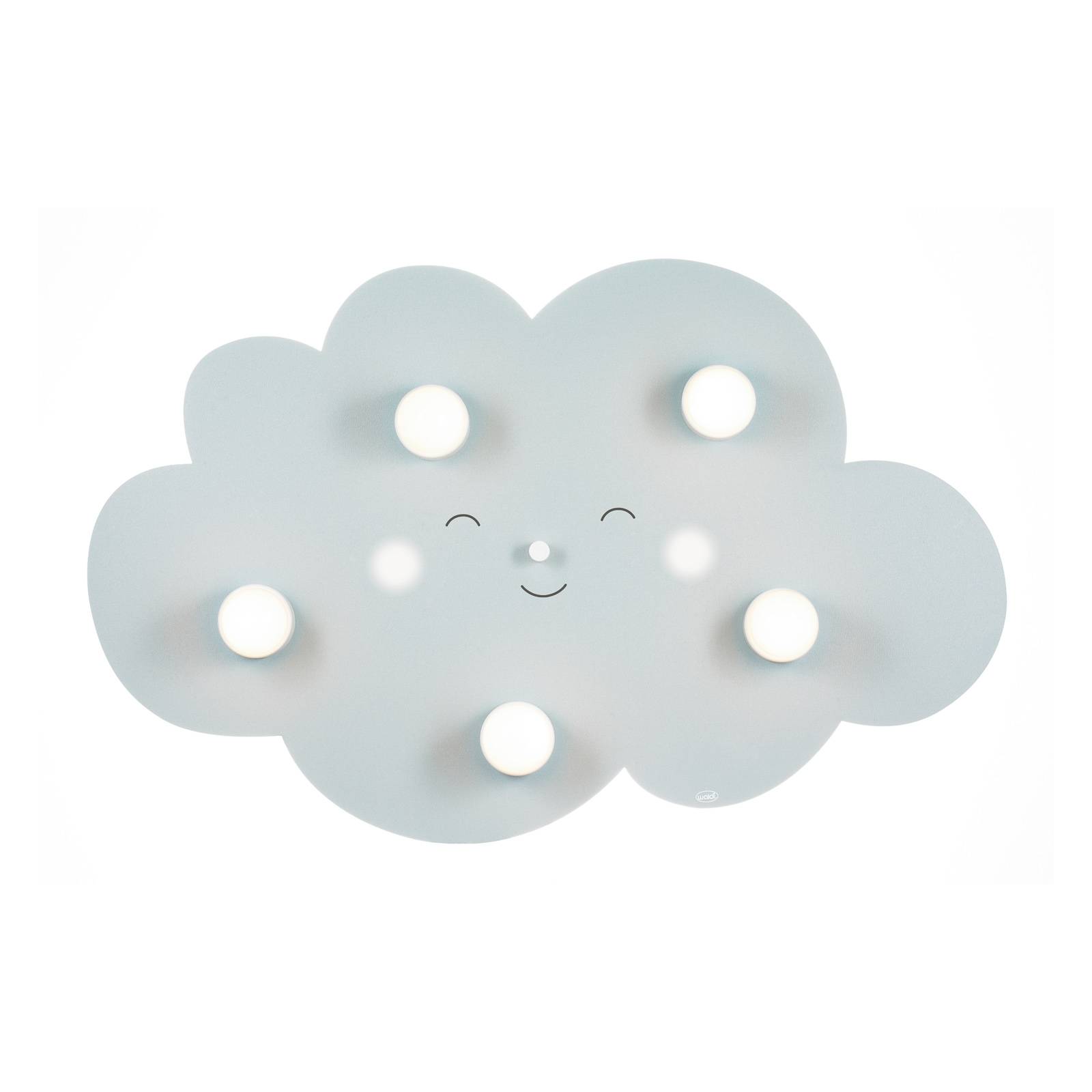 Lampada da soffitto a cinque luci cloud face in grigio La lampada da soffitto Cloud Face in legno con lacca grigia è stata lavorata a forma di nuvola e stampata con un motivo di facce. Questo è incorniciato dalle prese della lampada in metallo verniciato a polvere bianca. Per completare il look, si raccomanda l'uso di lampadine bianco opale (5 x max. 40 W). La lampada da soffitto Cloud Face è stata prodotta in Germania.