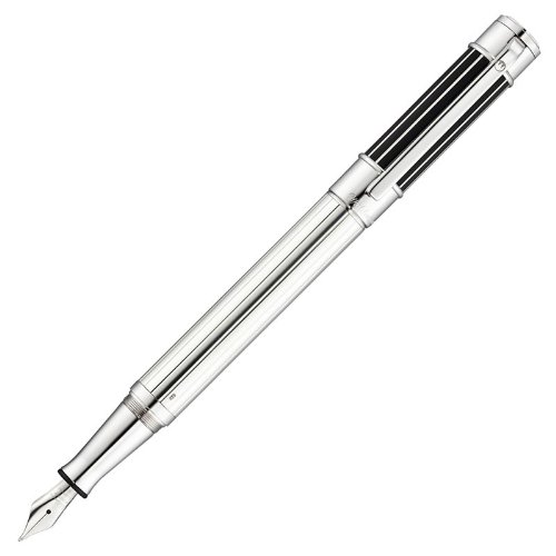 Waldmann Commander, penna stilografica largo B, design lines, lacca nero, argento massiccio 925