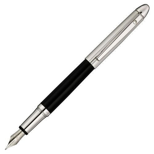 Waldmann Pocket, penna stilografica fine F, design lines, lacca nero, argento massiccio 925