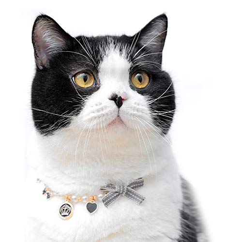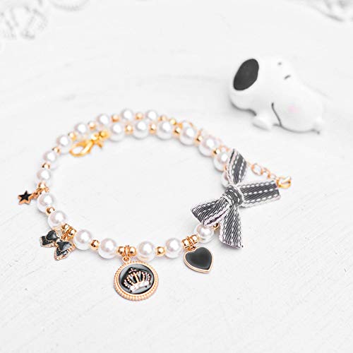 Walenbily, collana per cani e gatti, con ciondolo a forma di cuore, con strass, corona per gatti di piccola taglia (nero, M)