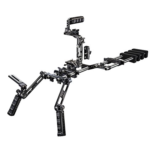 Video Rig con struttura modulare, con modulo di supporto, impugnatura e spalla per riprese video stabilizzate in molte situazioni.