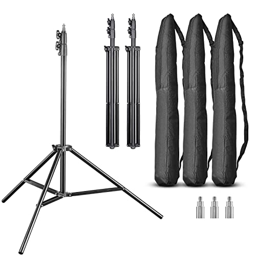Walimex pro FT-8051 - Treppiedi per lampada da 260 cm, con ammortizzatore a molla, altezza max 260 cm, portata 5 kg, in alluminio, per studio fotografico, esterno, con borsa e adattatore, set da 3