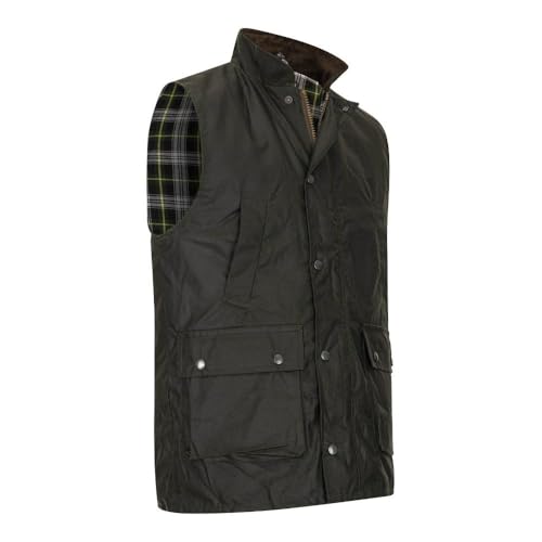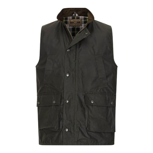 WALKER AND HAWKES - Gilet da uomo Winchester multi tasca in cotone cerato gilet da campeggio all'aperto escursionismo giacca da viaggio marrone, Oliva, L