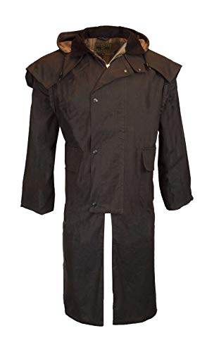 Walker & Hawkes - Impermeabile lungo cerato, unisex, stile mandriano, con cappuccio Marrone L