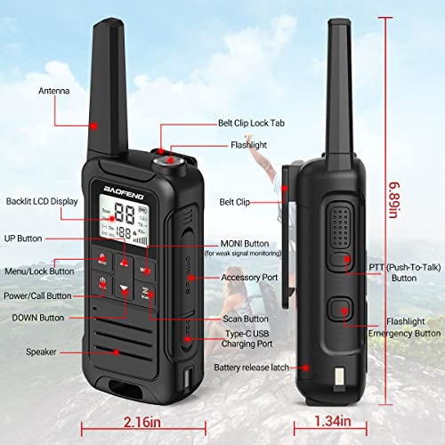 Walkie Talkies BAOFENG PMR446 Radio ricaricabile a lungo raggio per adulti IP54 impermeabile Walky Talky Handheld Radio bidirezionale con torcia per escursionismo campeggio viaggio