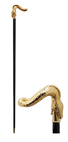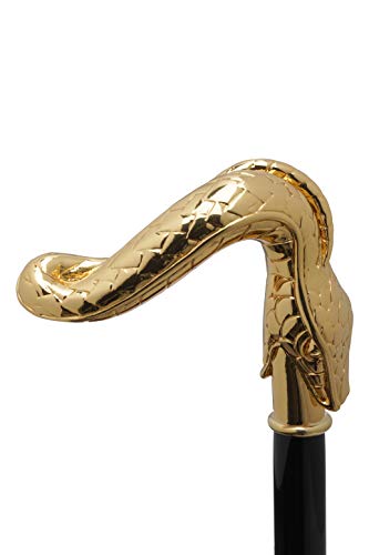 WALKING STICKS Bastone Passeggio Placcato Oro 18k Elegante Uomo Impugnatura British Country Dandy Cerimonia Matrimonio Prestigioso Lusso, Bastone da Passeggio Placcato Oro 18k Testa Serpente Cobra