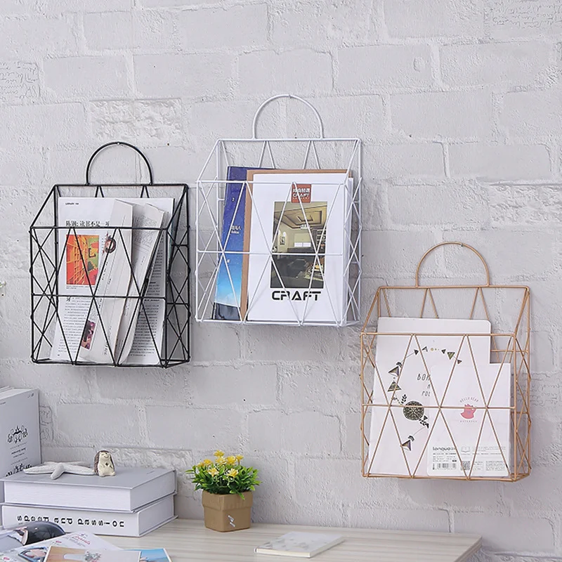 Wall-mounted Wrought Iron Simple Bookshelf Living Room Racks Hanging Creative Magazine Rack Storage Bookcase