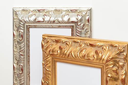 Wallazz Cornice portafoto in legno da parete, Made in Italy, stile classico chic, dimensione 60x80 cm, colore profilo foglia argento. Cornice per tele pittoriche