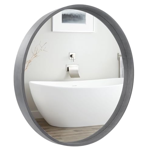 WallBeyond Specchio rotondo con cornice in legno, 60 cm per bagno specchio da bagno rotondo decorativo da parete per ingresso soggiorno decorazione per la casa (grigio)