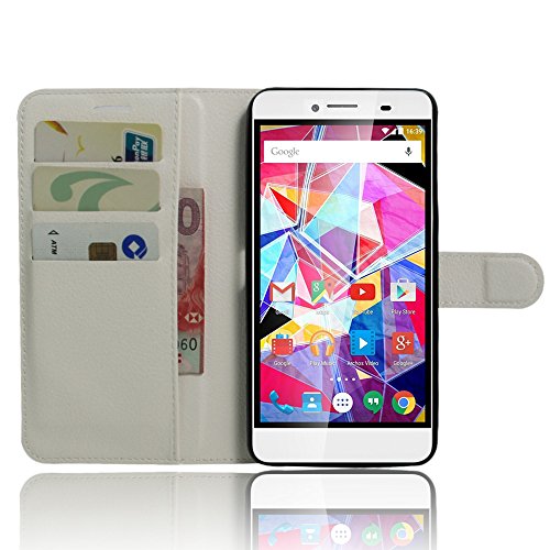 Wallet Cover Per Archos Diamond plus, Custodia Per Archos Diamond plus - SMTR Custodia In Pelle Con Wallet Case Cover Per Archos Diamond plus - bianco