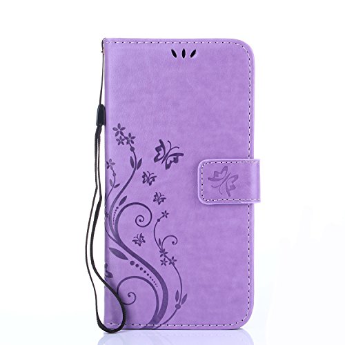 SMTR Wallet Cover Per Huawei Y6 2017, Custodia Per Huawei Y6 2017 - Retro Flowers Design Pattern Custodia In Pelle Con Wallet Case Cover Per Huawei Y6 2017 (porpora )