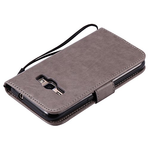 Cozy Hut Wallet case Custodia a portafoglio per Samsung Galaxy J1 (2016) J120 - Custodia flip cover in Design cartoon e gatto albero con scompartimento tessere e funzione supporto in vari colori - grigio