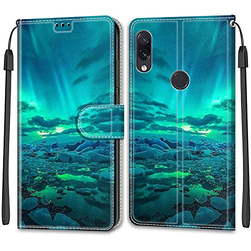 YKTO Flip Wallet Custodia Portafoglio per Xiaomi Redmi Note 7 / Note 7 PRO Dipinto Flip Premium Protettiva PU Pelle Case Aurora Verde Modella Cover Multifunzione con 2 Slot Carte Portafogli