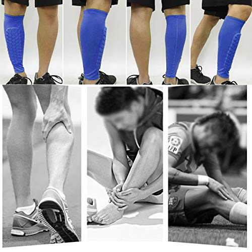Wallfire - Parastinchi sportivi per uomo e donna, un paio di protezioni professionali per polpacci, a compressione, antiurto, per calcio, basket, ciclismo, arrampicata Blu XL