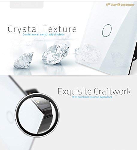 Wallpad 1-3 vie, interruttore dimmer con sensore touch e telecomando, Vetro, White, 1 Gang Remote Dimmer 2000.00watts