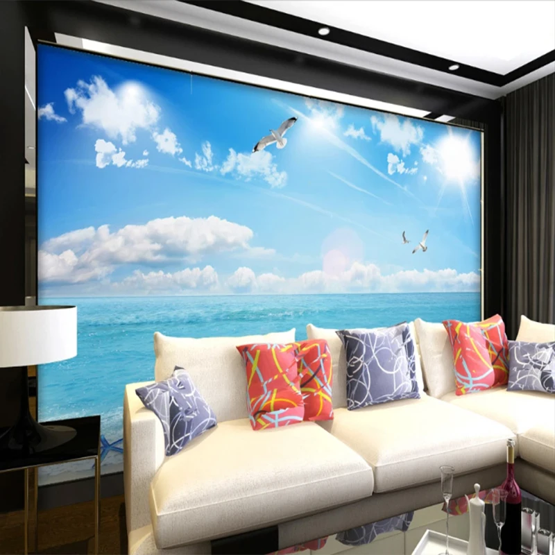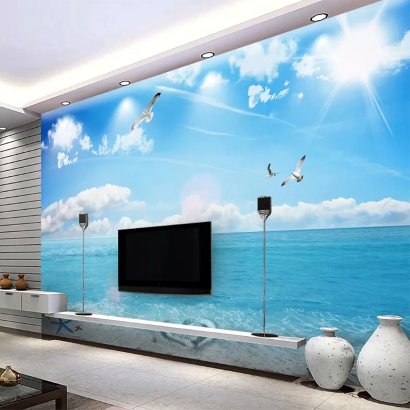 Wallpaper Home Decoration Sky Blue Romantic Beach Sea View 3d Wall Mural