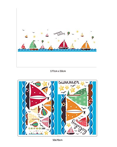 Wallpark Cartone animato Blu Oceano Mare Barca a vela Gabbiano Baseboard Removibile Adesivi Murali Adesivi da Parete, Bambini Camera Vivai DIY Arte Decorativo Adesivo Murale
