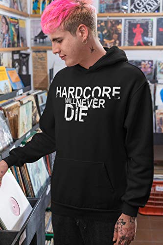 WALLSHIRT Felpa Cappuccio Unisex Hardcore Will Never Die