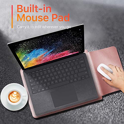 Walnew - Custodia morbida e sottile, in pelle, per computer portatile per Microsoft Surface Book da 13,5 pollici, con risvolto di protezione interno e tappetino per mouse esterno C-PINK 13.5'' Surface Laptop