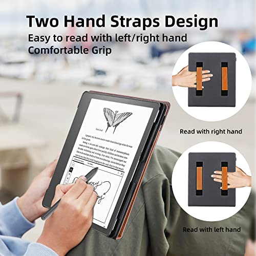 WALNEW Custodia a portafoglio per Kindle Scribe (10,2 pollici, 2022), Kickstand per Kindle Scribe Reader con portapenne e funzione sveglia automatica (marrone)