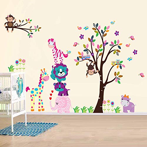Walplus Adesivi Vinile Rimovibile E Riutilizzabile Perfetto Per I Regali Facile Da Usare Happy Zoo Animals Adesivi Murali Asilo Nido Per Bambini Decalcomanie Decorazione Camera Da Letto Multicolore
