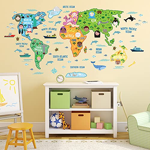 Walplus Adesivi In Vinile, Rimovibili E Riutilizzabili, Perfetti Per Regali, Facili Da Usare, Mappa Della Scuola Materna, Mondo Educativo, Murale, Decalcomania, Decorazione, Multicolore