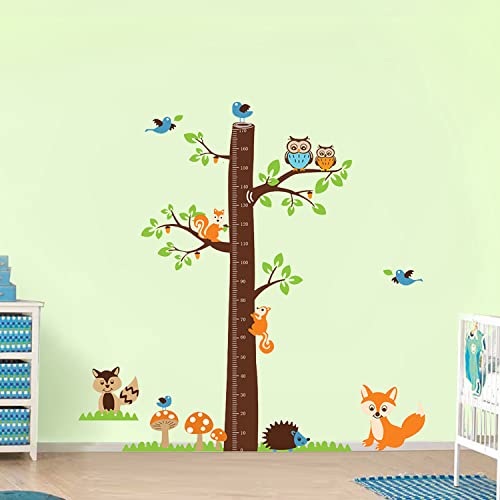WALPLUS AY221 - Adesivo da Parete con Metro per Bambini, Motivo: Albero con Volpi, Multicolore