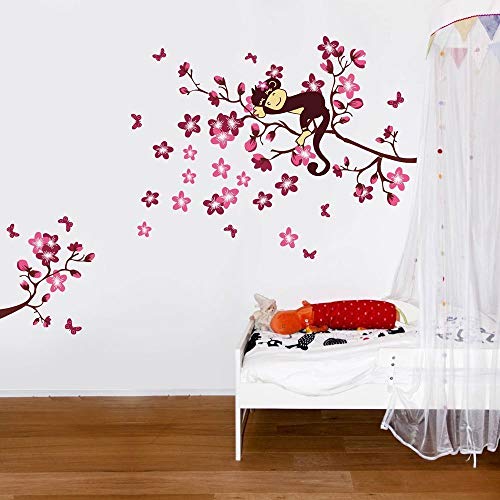 Walplus Sleeping Monkey On Pink Flower Tree Wall Sticker For Children Bedroom Baby Nursery by KitchenCentre