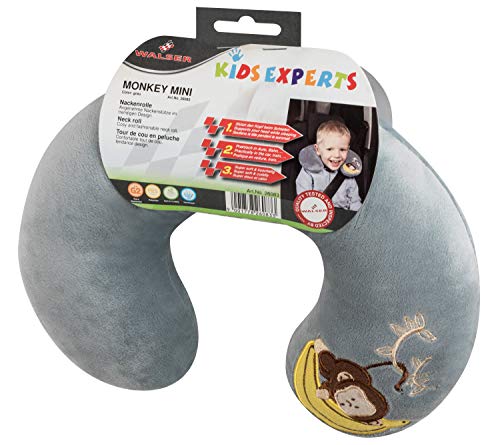 Walser 26083 Monkey Mini-Cuscino Cervicale, il collo a partire da 3 - 4 anni, Grigio