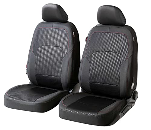 Walser Premium Coprisedili Logan con sistema di chiusura lampo, ZIPP-IT coprisedili per sedili anteriori nero/rosso 11860