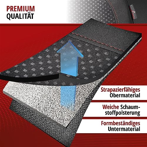 Vestibilità universale: Il coprisedile WALSER ZIPP-IT Logan nel colore nero/rosso è adatto a tutte le marche di veicoli comuni (vedi foto informativa).