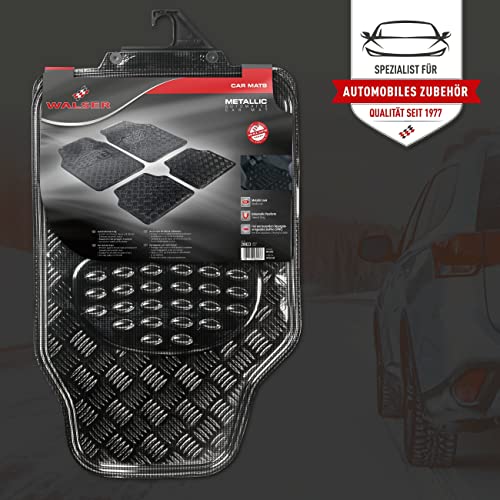 WALSER tappetini in gomma, tappetino auto universale metallico, tappetini set completo checker plate, cattura sporco tagliato su misura 28023