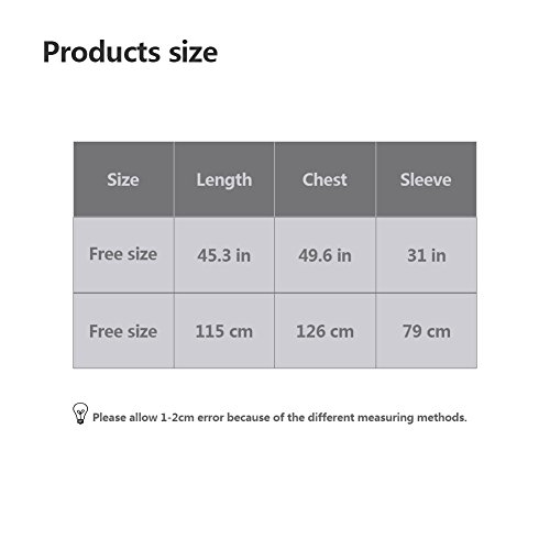 【Formato】 Formato libero misura per la maggior parte, Lunghezza: 115CM, Lunghezza del manicotto: 79CM, Busto: 126CM