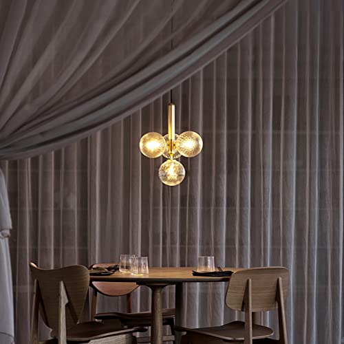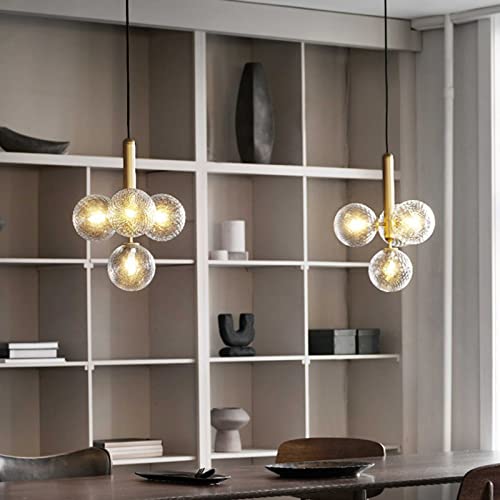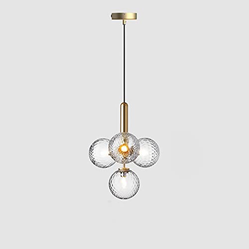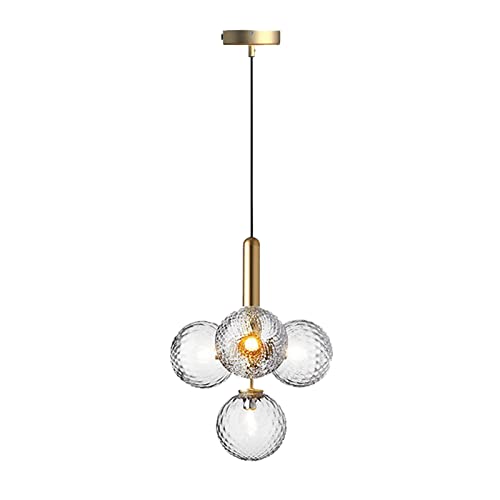 WAMBAS Lampada a Sospensione a Globo in Vetro Trasparente a 4 luci Lampada a Sospensione con Finitura in Ottone Dorato per Isola Cucina (Ottone Dorato, Vetro Trasparente)