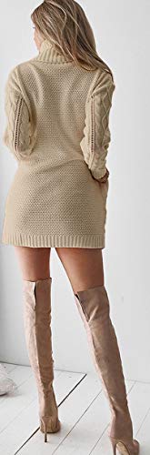 Wamvp Collo Alto Donna Abito Maglia Mini Abito A Maniche Lunghe Abito Casual Autunno Invernali Camicia Pullover Jumper Maglione Vestito Abito Eleganti Vintage