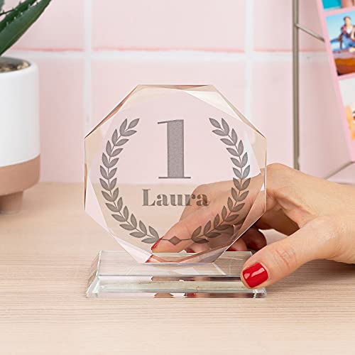 Wanapix | Trofeo Personalizzato in Vetro | Incisione Laser - Testo | Astuccio Incluso | Premio/Trofeo/Ricordo | Ottagonale 17 cm | Primo Premio