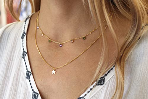 WANDA PLATA Collana Girocollo Doppia Stella e Zirconi in Argento 925 Placcato Oro, per Giovane Donna, Ragazza con Catena Regolabile in Confezione Regalo