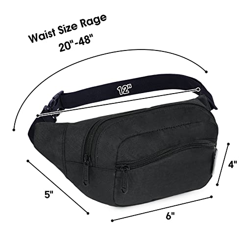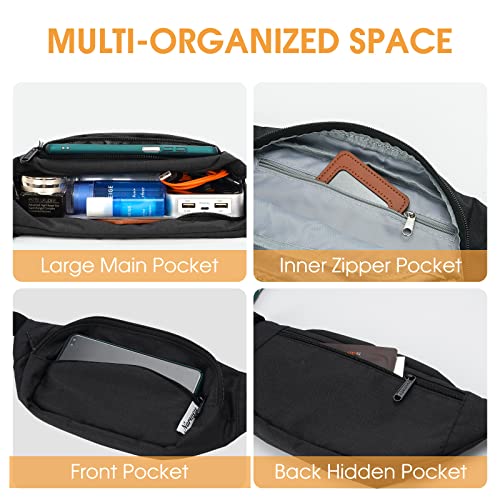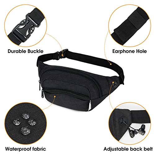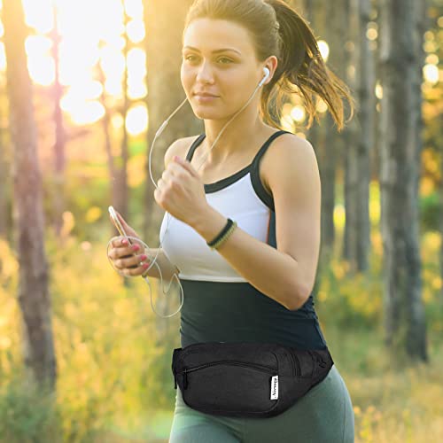 WANDF Marsupio per uomo e donna regolabile, marsupio per sport, corsa, jogging, escursionismo, Nero, Taglia unica,