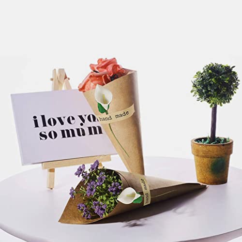 Facile da usare: la carta kraft è quadrata in modo che sia facile da rotolare e fare un cono, quindi utilizzando nastro biadesivo per attaccare due lati. Alla fine, è necessario attaccare un fiore con un adesivo.