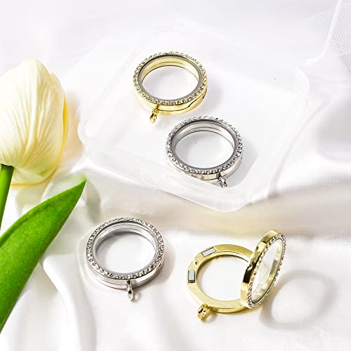 WANDIC - Ciondoli per foto con strass, 4 pezzi, rotondi, per bouquet da sposa, foto fai da te (2 argento + 2 oro)