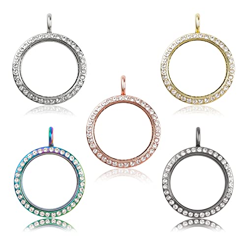 WANDIC Ciondoli per foto con strass, 5 ciondoli rotondi in memory foam, per bouquet da sposa, per foto o decorazioni, 30 mm